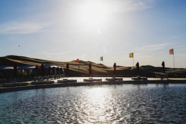 下到中庭时已经快关门了,看着游泳池衬着沙漠,有一种虚无缥缈的感觉,人类果然乐于建造海市蜃楼。