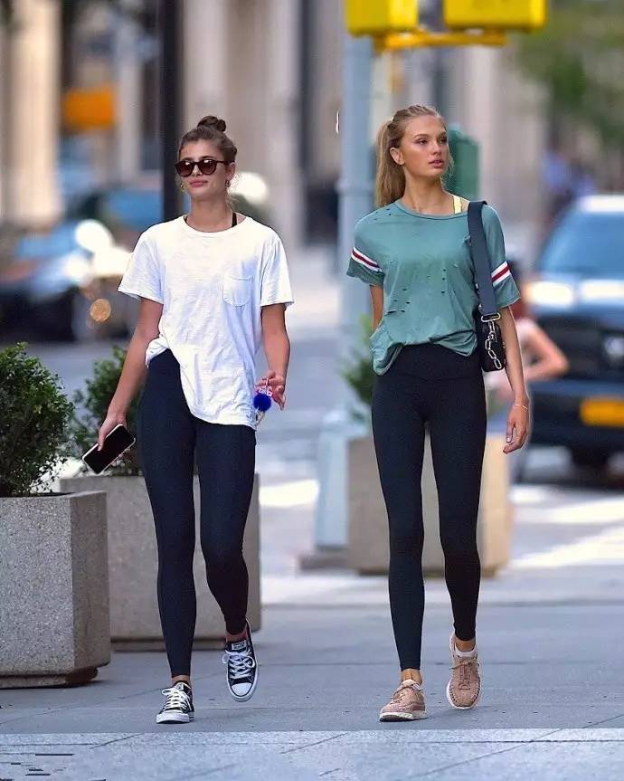 ▼把T恤穿得最随意的当属Taylor Hill和Romee Strijd。两人同穿黑色紧身裤秀和松垮大T逛街。感觉别人买菜都比自己精心打扮洋气的酱小妹哭晕在厕所。不过看到Taylor的腿也不细,就豁然开朗了!