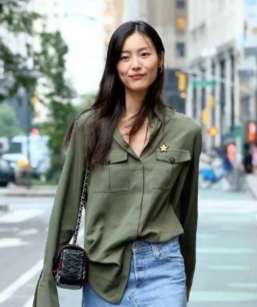 ▼军绿色衬衣的大表姐,帅气又温油,单扎随意又心机露腰线。