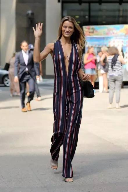 ▼Hilary Rhoda的黑色针织衫和牛仔裤似乎普通和包得严实了些,不过仔细看,裤脚、包包和彩虹色罗马凉鞋都是亮点啊。