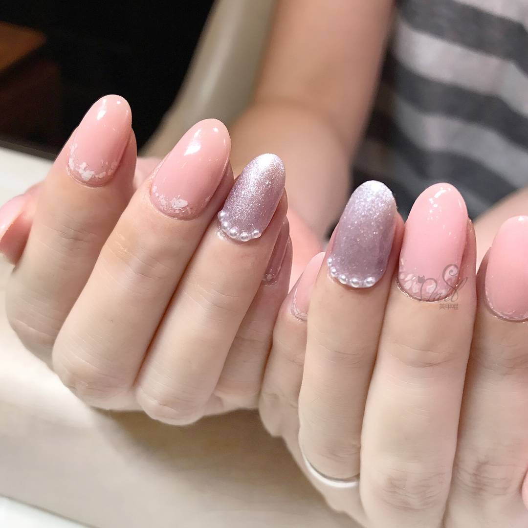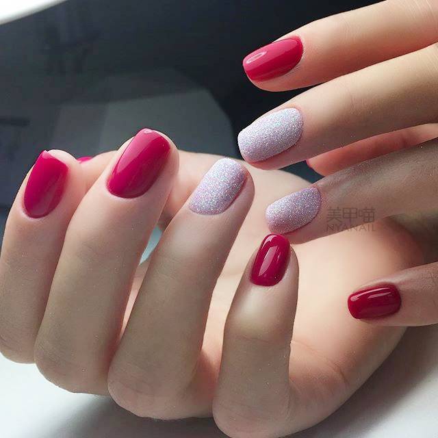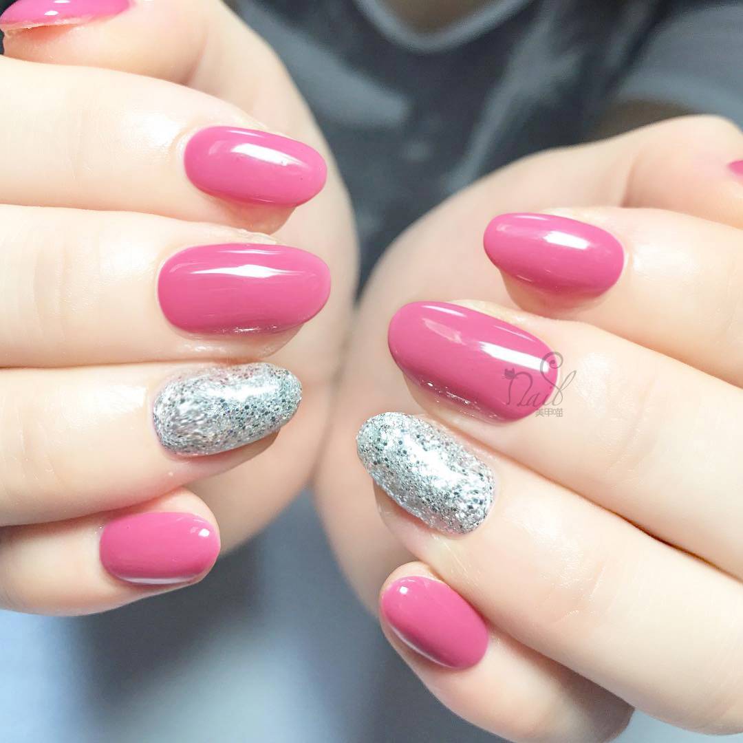 一年四季都偏爱粉哒哒的小仙女们粉色和玫红色肯定是你们的最爱了,粉色可以选择裸粉或者橘粉系,玫红色选择饱和度比较低或者深系玫红。这两个色系和带有金葱、珠光的浅色系特别搭。