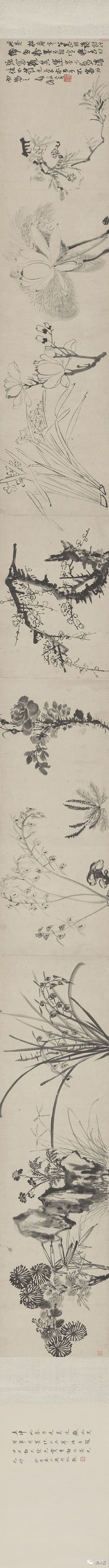 虽于今世,王铎凭其书法著名,但他也作画,清人张庚称王铎山水“沉沉丰蔚,意趣自别”,又褒其花草“超脱名贵”。现世存的王铎具款花卉画,有二十件。(薛龙春《王铎应酬作品的统计研究》)