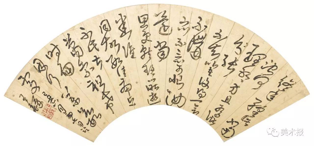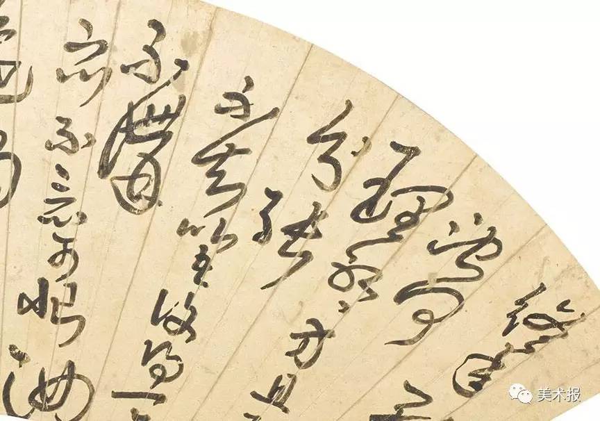 扇面其本身是金笺,写字时滑,字形亦较原帖小,故需收力。又,其实王铎书扇面权当应酬作,自己不重视——他说:“余学书卅年,究心有日,……因投笔不为,而无如执交纷纷索之,间作短緽、素箑,聊为尔耳。”(《临帖册》跋,见《兰千山馆法书目录》)“箑”是“扇子”的意思。