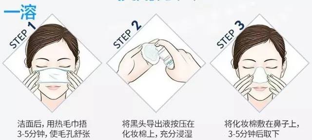 Step 1 :清洁肌肤,打开毛孔,敷黑头导出液3-5分钟