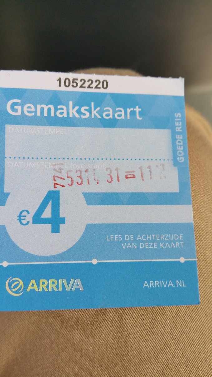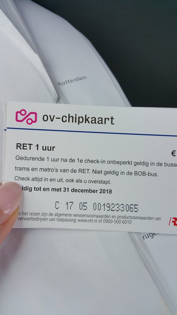 从海牙中央火车站到鹿特丹中央火车站,车程30分钟,大人5.5欧,小孩3欧。每个城市的公交政策是不一样的,一到鹿特丹,上了MIDI,我们就被要求买4张票(1小时内),每张3欧,儿童不免费。