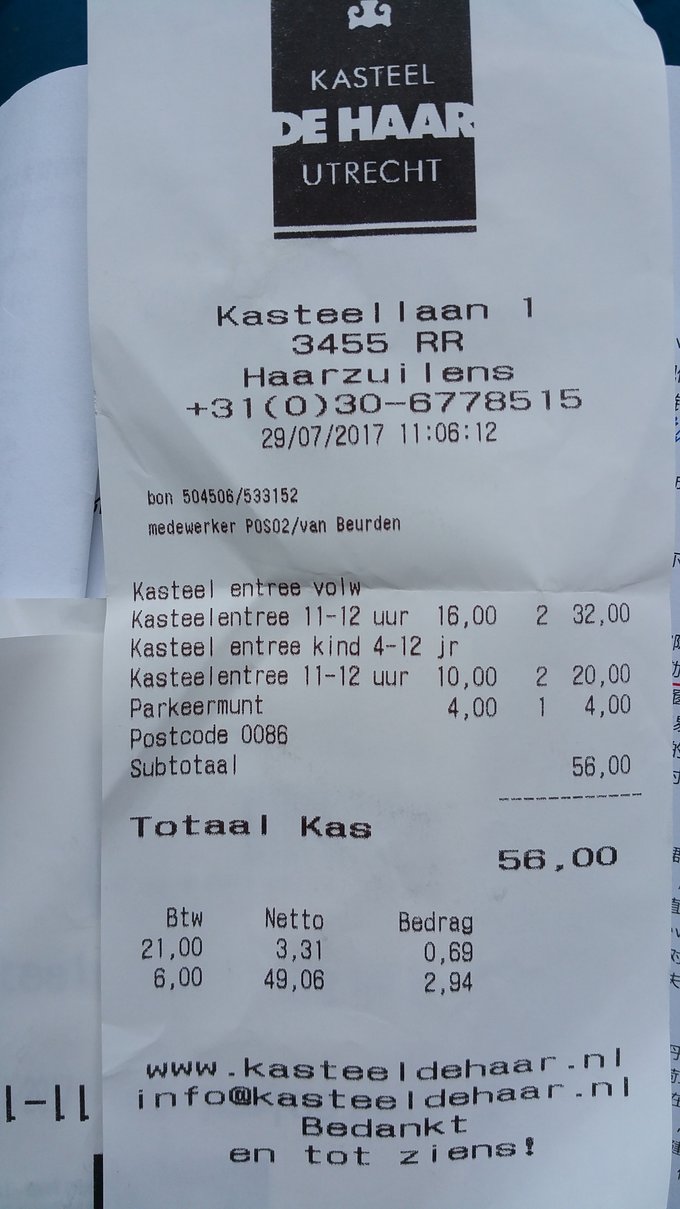 乌特勒支的重头戏是德哈尔城堡,我按照穷游网上的路线花了好多冤枉钱,光火车票就是大人4.6欧,小孩2.5欧,再加上公交车的费用,白白浪费了14.2欧。最佳的方式是从中央火车站前的公交站直接上9路车,全程2.7欧一人,大人小孩同价,买票时告诉司机你要去德哈尔城堡,他会到站叫你。回来时同方向坐9路车,到底就是中央火车站,根本不用坐火车。城堡里面可以单买外面的花园或者花园和城堡参观的票,具体收费如下。