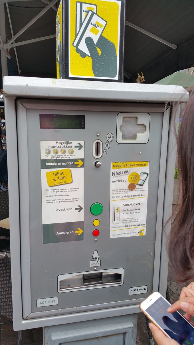 根特有轨公交的特点是车上不买票,普通BUS可以问司机购票,但数量不多。从火车站到酒店路程较长,买票只能去打机器买,