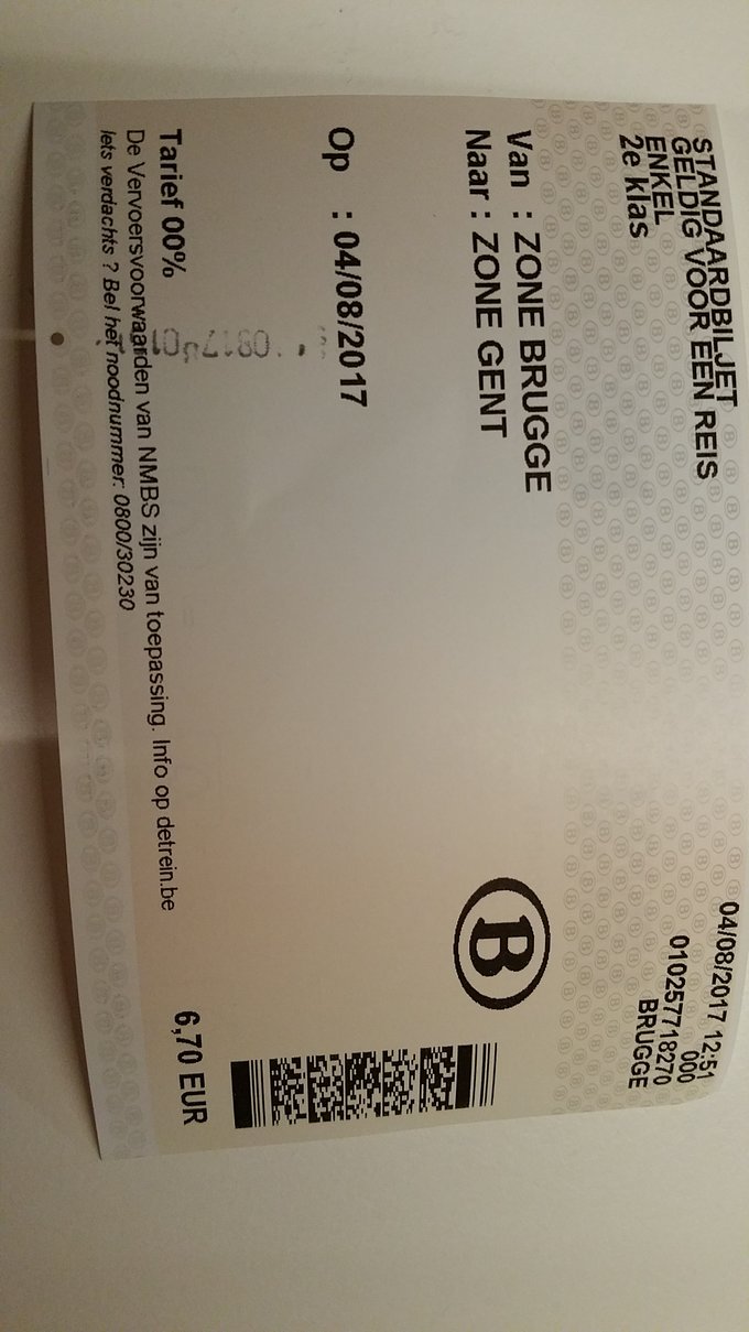 布鲁日到根特火车大人6.7欧,小孩12岁以下免费,车程半小时。