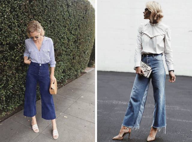 还有一些人膝盖肉很多,就不适合喇叭裤款式,阔腿裤是很好的选择。▼