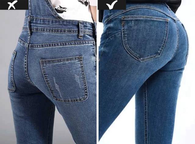 很多版型不好的牛仔裤裆部很深,穿起来不够贴身身材曲线,也会让臀部看起来扁平。▼