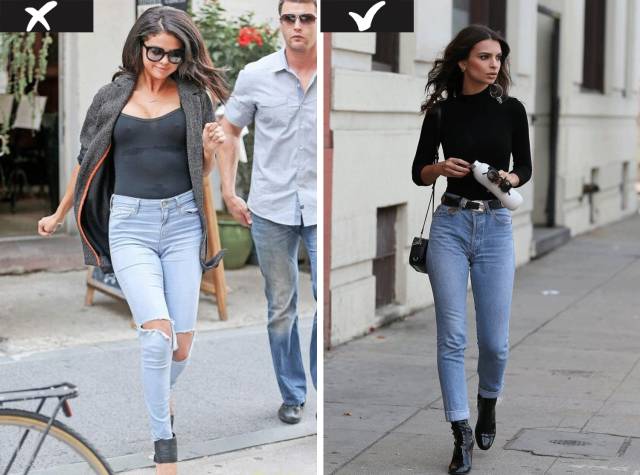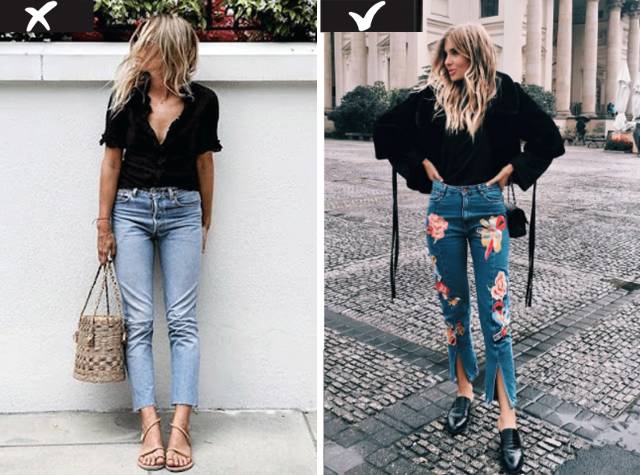 牛仔裤几乎人手一条,紧身的、宽松的,还有破洞的、磨白的,看上去差不多的牛仔裤,其实要根据自己的身材优缺点来穿对,是一件非常不容易的事情。穿得好秒变大长腿,穿不好更加凸显身材缺点。