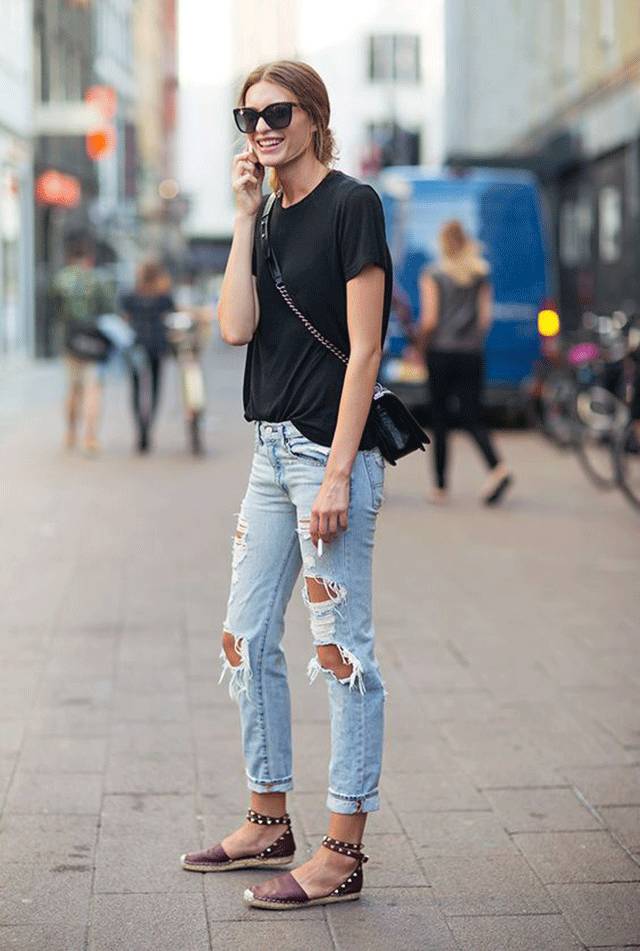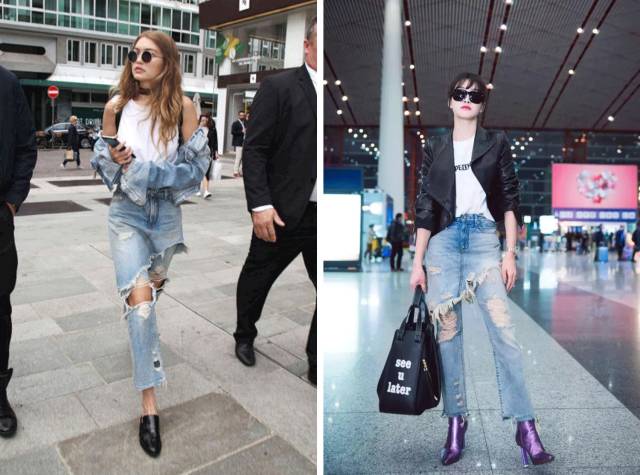 夏天很多人还喜欢穿破洞牛仔裤,时髦好搭。▼