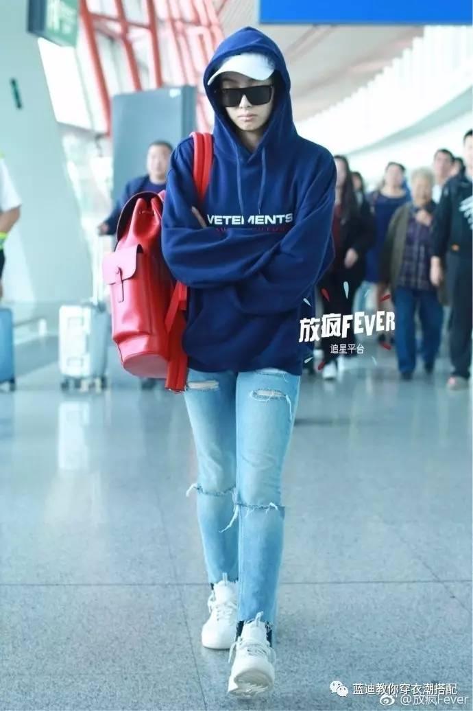 9月1日,宋茜现身北京首都机场 @宋茜 上衣:Vetements ×@TommyHilfiger 裤子:@offwhite官博 鞋子:@NIKE 背包:Louis Vuitton x Supreme(图源:@放疯Fever )#宋茜# #女明星私服#