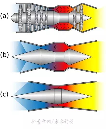 而(b)代表冲压发动机;(c)表示超燃冲压发动机