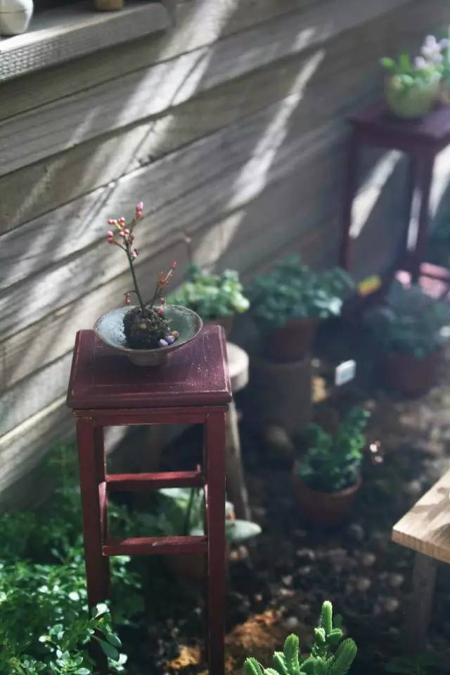 西树喜欢称自己的作品为“袖珍”而非“微缩”,一来他觉得“袖珍”这两个字才是中国人的,二来“微缩”总是给人模型的感觉,但西树确凿地说这些东西都是真的。微花园里手指头大小的植物是他特地培养的迷你多肉,放在一旁的小铜壶真的可以用来浇水,花园里的椅子有真实的结构,为了让结构更牢固,他还用钉子进行固定,椅子上的垫子也是用真的海绵和棉布做的,他希望“如果你喝了缩小药水走进去,就可以真的在里面生活。”