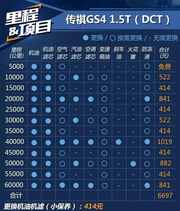 GS4的保养政策也符合主流,赠送一次首保,包含机油、机滤和工时。首保里程为5000公里,要比RX5厚道一些,然而相比上述几款自主车7500公里/次的保养间隔,GS4才5000公里/次的保养间隔谈不上厚道。