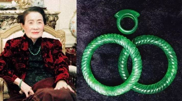宋美龄能活到100岁,估计也有“养生之王”翡翠的功劳~上图是她最著名的满绿翡翠首饰,将高龄老妇人衬托得高贵优雅。不过这些首饰,还真不是普通人戴得起的,价值连城!据说,光一只翡翠麻花手镯就值5000多万。