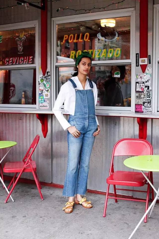 说到如何不好好穿背带裤,这简直是能一秒上手的时尚技巧。只需要解开一边的背带就好。▼