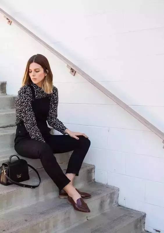雪纺的衬衫,以及设计感更强的衬衫都可以和背带裤搭配。▼