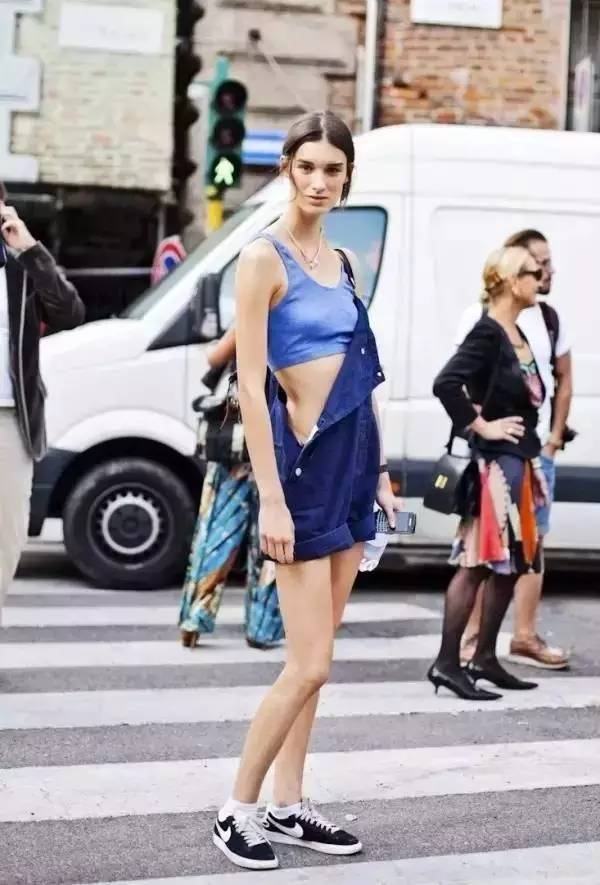 初秋的天气总是反复无常,也要准备几套凉快的look为自己降温。内搭隐形法就是这时候用的:背带裤里穿吊带背心或者抹胸,让你的内搭视觉隐形。这一招Gigi用过,腿长两米有木有!▼
