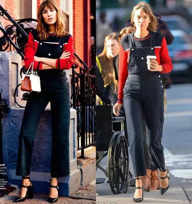 钟小姐穿各种各样的背带裤,可是从来没有“粉刷匠”的感觉。看出什么了吗?因为内搭啊!!如果你以为在背带裤的遮挡下,看不出来内搭而随便乱穿,那就大错特错了。钟小姐可从来没有在背带裤里面打大妈T恤~▼