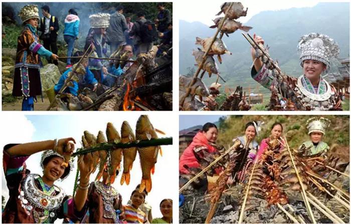 田间捕鱼,捡拾柴火户外野炊,看一下岜沙人是怎么进行户外烹饪的。