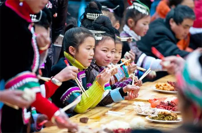 “长桌宴”是侗族最为隆重的待客礼俗,丰盛的侗家佳肴摆满了长条木桌。来到侗寨,当然要体验一番特色长桌宴。