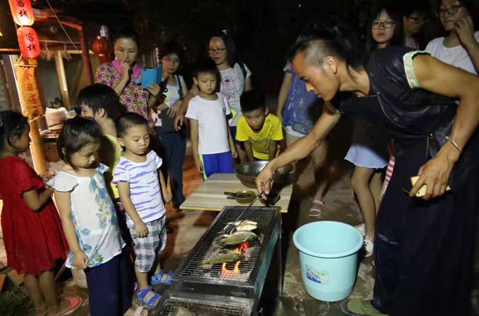 入乡随俗,以地为桌子,特色的叶子为桌布,组成一顿特色的户外野餐。田地里捉上来的稻花鱼,在这里直接就地烧烤配搭上特色的野菜,组成一道别处没有的特色烤鱼。户外猎来的鸭子用原始的方式一煮又是一顿特色的野味……