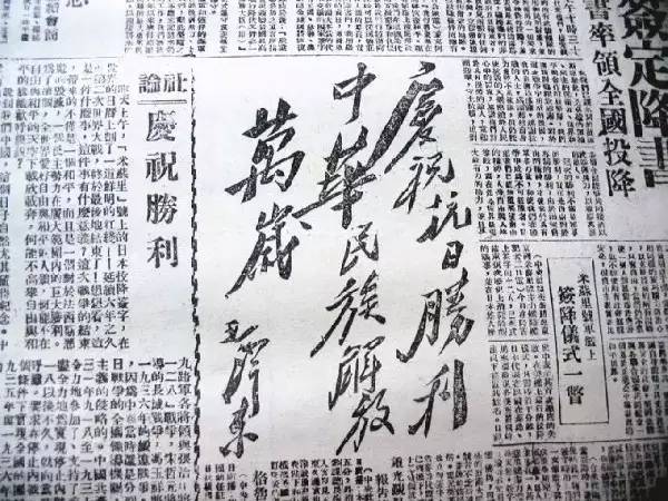《新华日报》发表毛泽东题词:“庆祝抗日胜利,中华民族胜利万岁!”