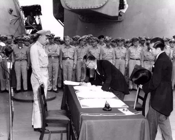 参加受降仪式的有美国代表尼米兹海军上将、中国代表徐永昌上将、英国代表布鲁斯·弗雷泽(福拉赛)海军上将、苏联代表杰列维扬科(狄思夫扬科)中将、澳大利亚代表托马斯·布莱梅将军、加拿大代表穆尔·戈斯格罗夫上校、法国代表雅西·勒克莱尔将军、荷兰代表赫尔弗里希海军中将、新西兰代表艾西特空军中将,共九国的代表。日本天皇和政府的代表、外务大臣重光葵,和日本大本营代表、参谋总长梅津美治郎,在投降书上签字,向盟国无条件投降。这是盟国战胜日本的标志。至此第二次世界大战胜利结束。