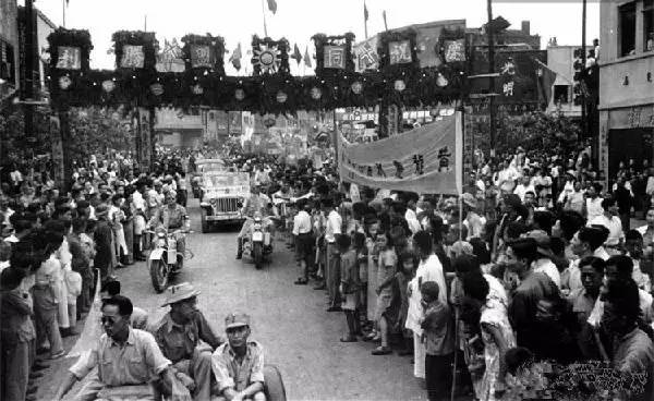 1945年9月3日,陪都重庆庆祝抗战胜利大游行。