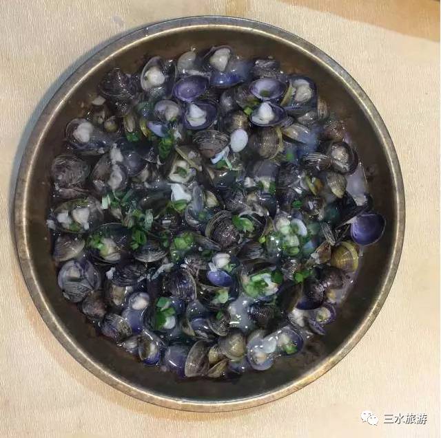 铜盆蒸北江黄沙大蚬又是另外一种风味!吃黄沙蚬,就是要吃那股有鲜腥的蚬味,最能体现这种味道的煮法,是用生蒜茸来蒸黄沙蚬。清蒸黄沙蚬最讲究火候,一般蒸1分钟就刚刚好,这样的黄沙蚬,味道又清又鲜,蒜茸的香味和蚬的鲜味配合得天衣无缝,一口啜一个,蚬肉和汁水齿颊留香!