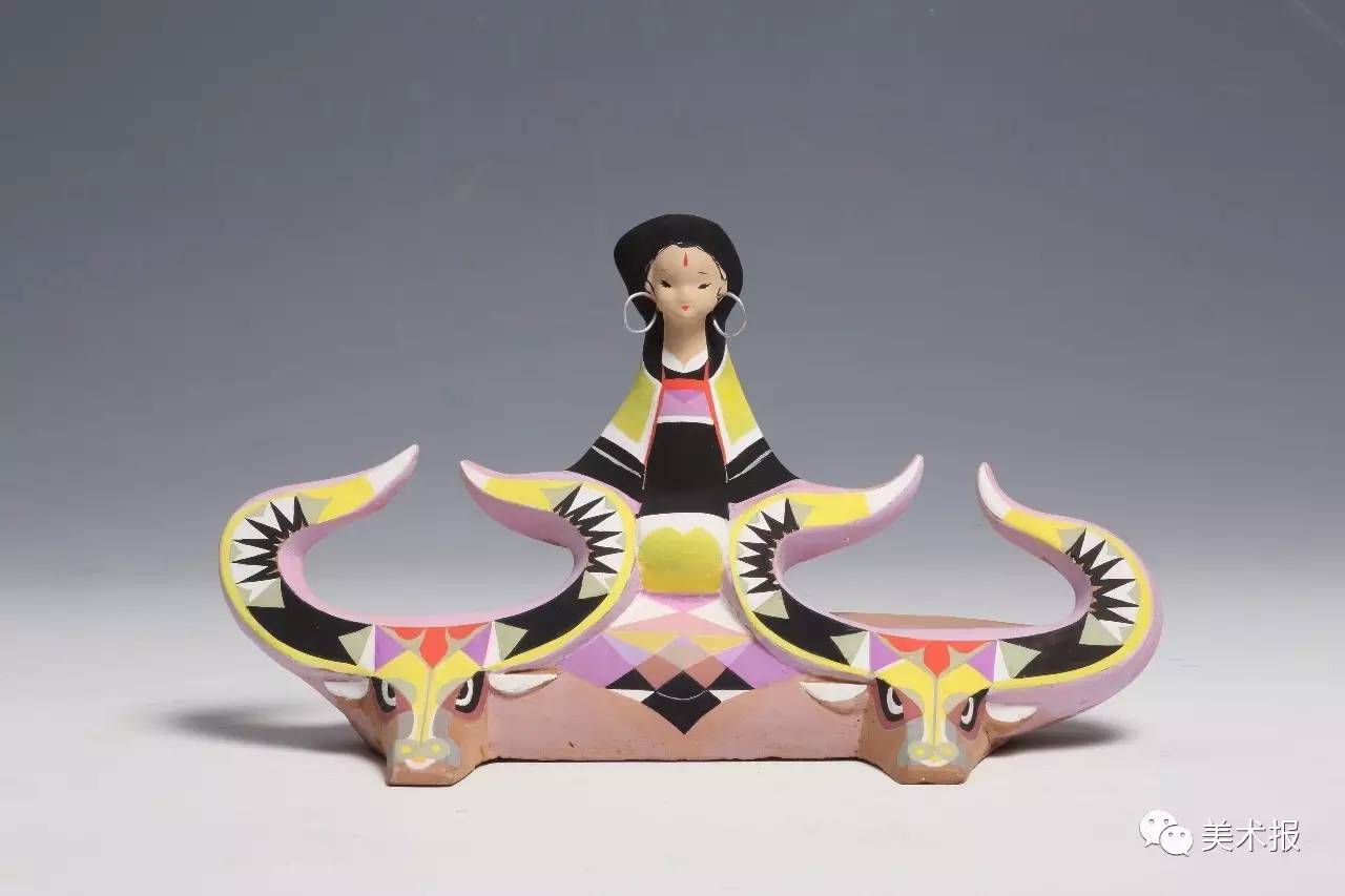 张锠的艺术探索,是在家学传统的启迪与推动下,不断学习、修为,在创作上,继承了“泥人张”彩塑艺术传统,又在此基础上吸收了国内外姊妹艺术之长,逐渐形成了造型夸张简洁,形色统一的现代装饰风格,从民间艺术泥塑起步,苦行探道其当代性,创建了自己的艺术语言与艺术表现的风格。