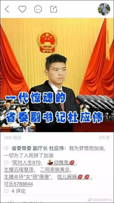 他还把这张图发到快手上,顺便加了一句令人颤抖的口号:“一代惊魂的省委副书记杜应伟”……