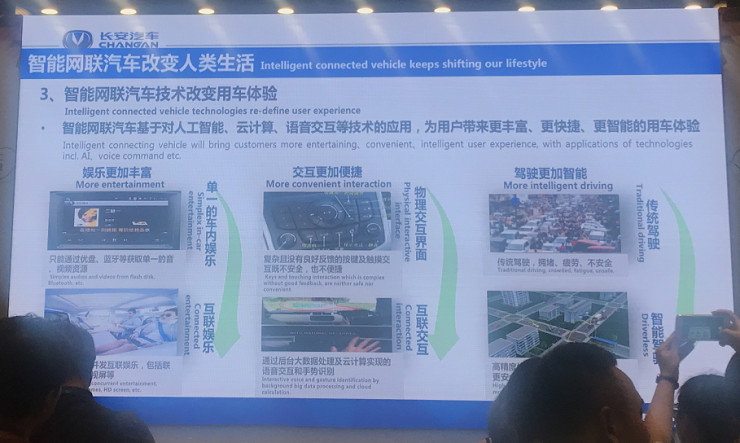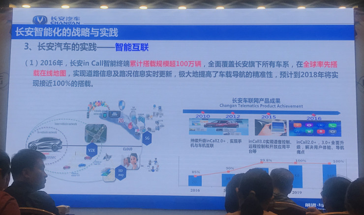 在网联方面,长安的品牌叫 InCall,累计搭载了 100 万辆,并且希望从明年开始,我们出的车是百分之百联网的。车联网了,才可能有数据。