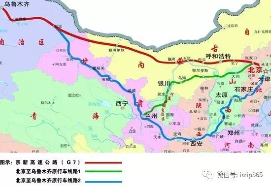 具体线路:北京→张家口→集宁→呼和浩特→临河→额济纳旗→酒泉(马鬃山)→哈密→伊吾→巴里坤→奇台→乌鲁木齐。