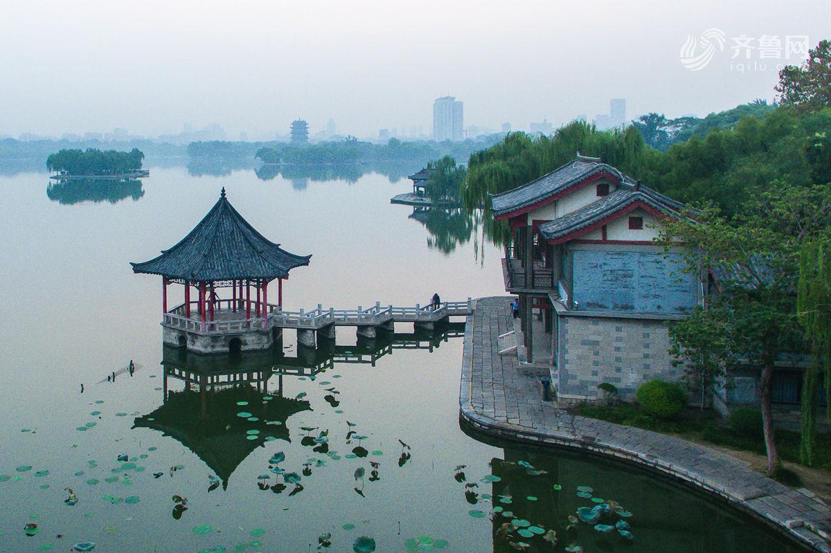 - 位于泉城济南闹市区的大明湖,是这座文化名城里的天然湖泊。湖水烟波浩淼,风光旖旎,文化底蕴也十分深厚。作为济南本土的航拍摄影师,通过无人机长时间记录大明湖暗香疏影、诗情画意的秀美景色,借助独特的视角,诠释着这座城中圣水的魅力。齐鲁网发/宋广兴 航拍摄影