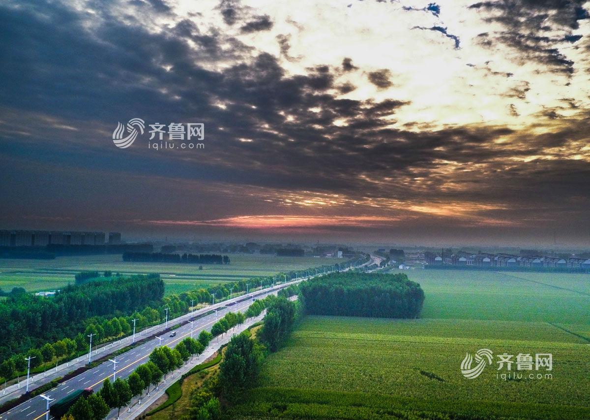 瞰山东:斑斓田野邂逅最美朝霞 邹平田园初秋美景如油画