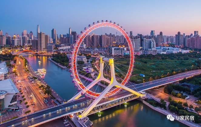世界上唯一建在桥上的摩天轮 ,天津之眼坐落在天津市红桥区海河畔,是一座跨河建设、桥轮合一的摩天轮,兼具观光和交通功用。