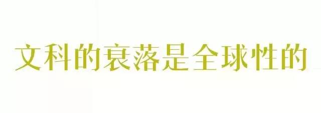 2013年,哈佛大学调查发现,自1966年以来,美国全国范围内人文学科的学士学位授予占总体学位授予比例已从14%下滑至7%,其中哈佛自1954年以来这一比例已从24%降至17%。非名校的文科更弱势,某些纯粹的文史哲专业,可能只有在名校才能读了。
