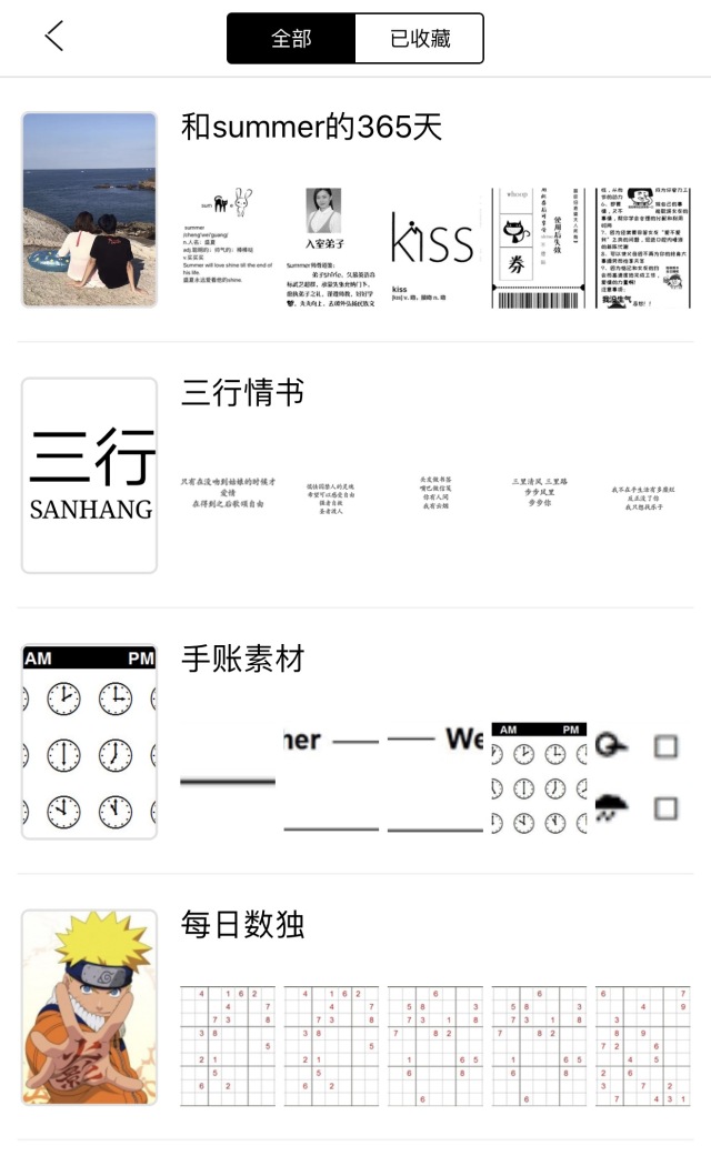 词汇表、字帖、姨妈记录表……不同素材号提供的不同素材,可以实现很多实用功能。