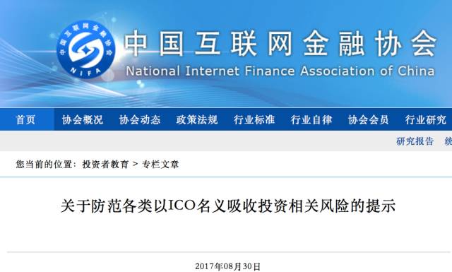 再往前,上周三晚,互联网金融协会发布“关于防范ICO相关风险的提示”,直指ICO存在较大的风险隐患,投资者自行承担投资风险。这是继央行、银监会、证监会之后,监管层又一次对ICO存在的风险进行提示。