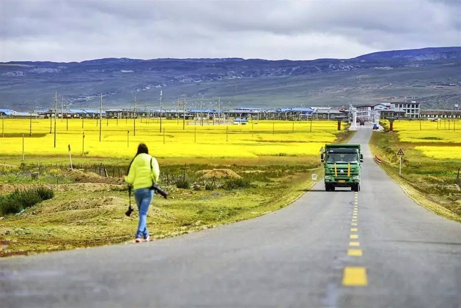 人们随意的漫步在其间,看着远处的雪山,近处的村庄,身边的油菜花,身心也会平静,这才是幸福的人生。
