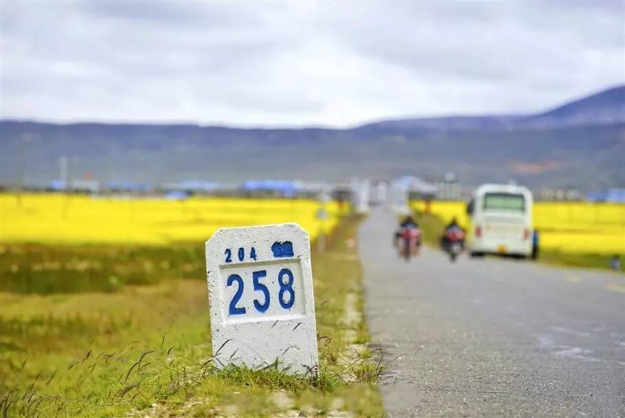 帕里镇的油菜花田最让人惊喜的就是,花田并不只被圈在了某一个地方,而是在路的沿途一直都有,让这条路的沿途风光也更加的优美。