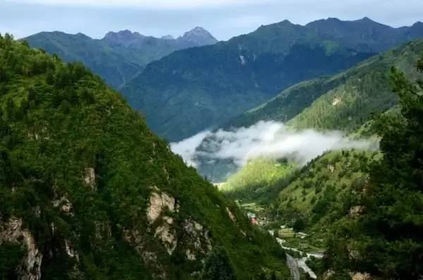 这里是一片欢腾的西藏小江南:满山满野的深绿,先是低矮的灌木丛,而后高耸的乔木林,应和着高山垂挂的瀑布,谷底浅吟的潺潺水流。