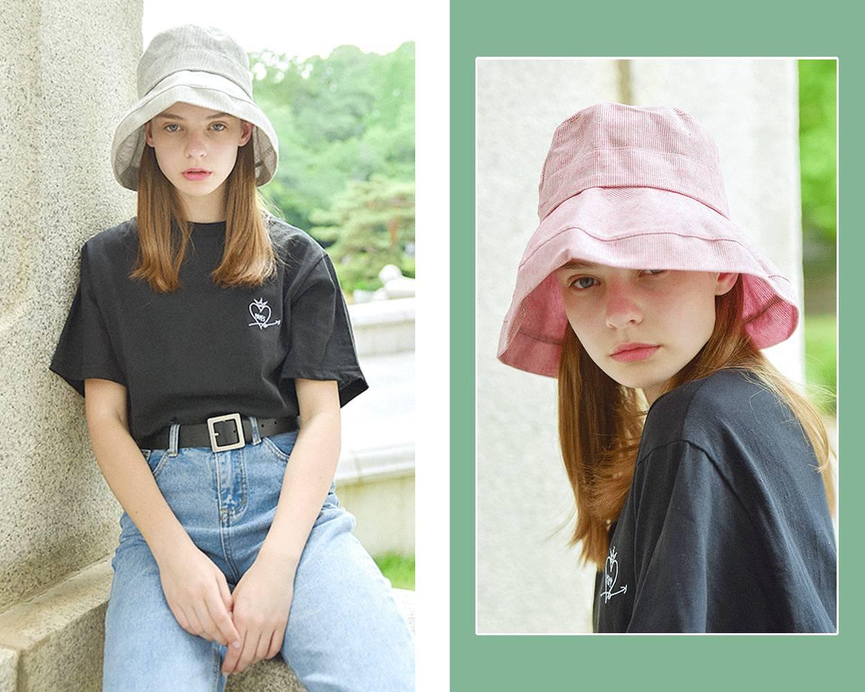 我还问了她,“感觉渔夫帽宽檐和窄檐有什么区别”?她回答得很直接,“宽檐渔夫帽遮阳最好,窄檐渔夫帽更有型~”
