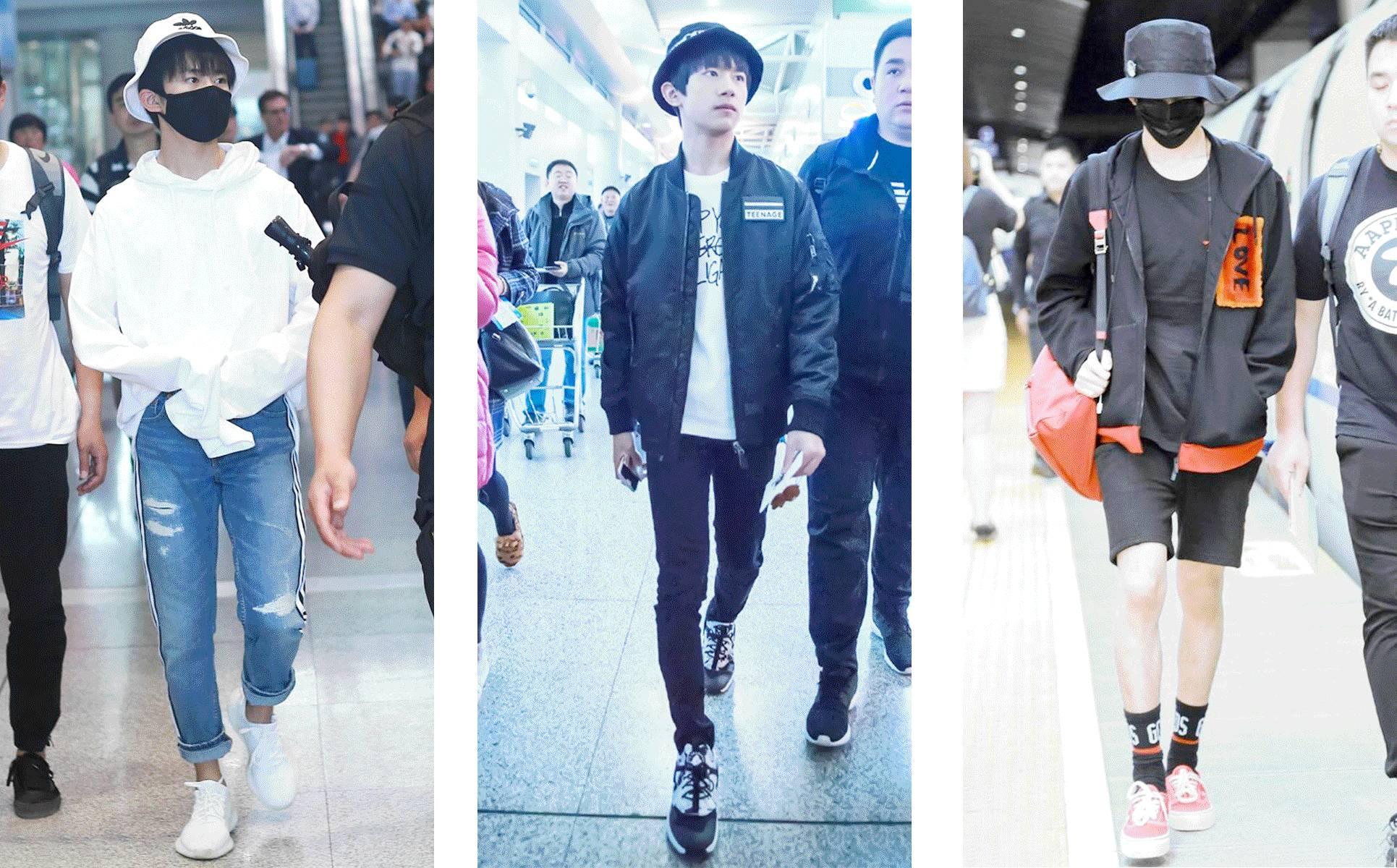 易烊千玺也是渔夫帽迷弟,坐飞机的时候一直戴。