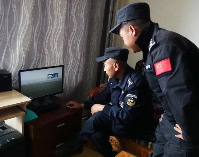 2017年8月7日,五道梁保护站的工作人员正在用视频监控藏羚羊群的迁徙情况。 郭红松摄