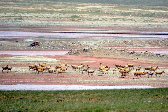 曾经,藏羚羊在盗猎者的枪下逃跑;如今,它们与公路上的汽车赛跑。由于保护得力,濒临灭绝的藏羚羊种群得到了拯救和稳定恢复。它们不再畏惧人类,甚至喜欢到公路边觅食。