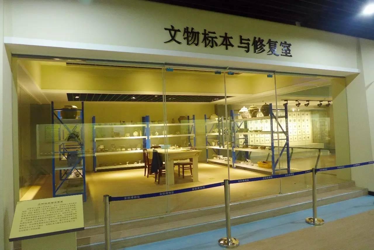 展厅中的文物标本与修复室